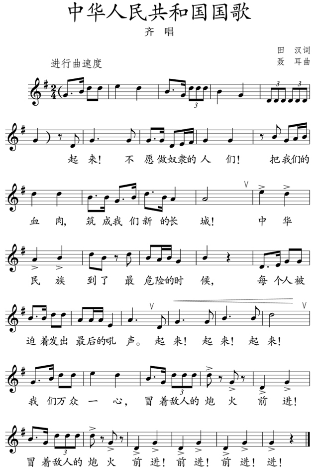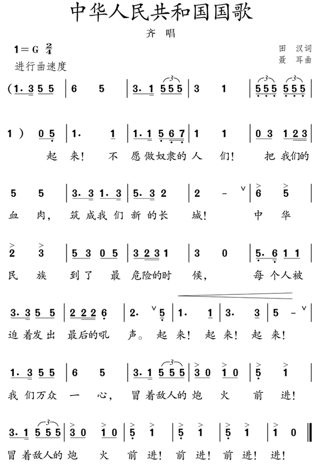 图片中华人民共和国国歌(简谱)