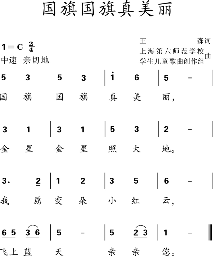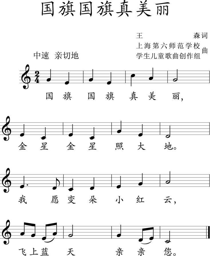 图片国旗国旗真美丽(五线谱)
