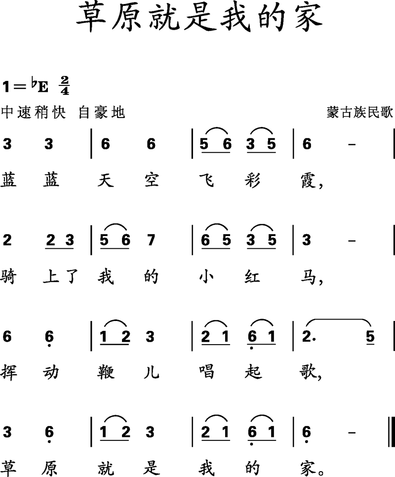 图片草原就是我的家(五线谱)